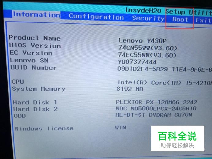 这里以Lenovo电脑为例,电脑开机时按下F2键,进入主板BIOS设置页面,将页面切换至“Boot”菜单选项。