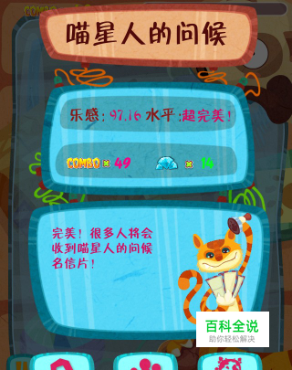 2《喵星人的问候》 玩法设计的很有意思,基本上是这四款游戏里最容易上手的,只需要按节奏点击屏幕给名信片盖章,白色名信片盖一下,彩色名信片盖两下。节奏感强烈,产生失误后很想再来一次以接近完美!这款游戏是四款中最容易产生combo奖励的。