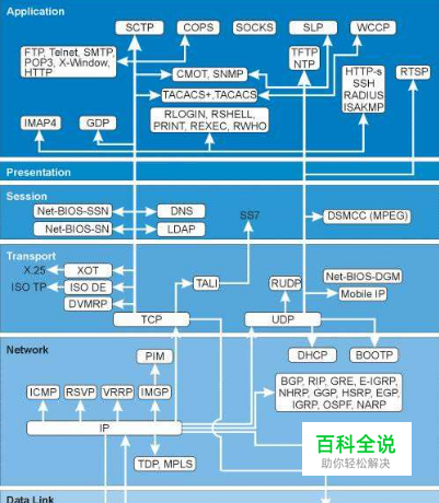第一层物理层 第一层负责最后将信息编码成电流脉冲或其它信号用于网上传输。它由计算机和网络介质之间的实际界面组成,可定义电气信号、符号、线的状态和时钟要求、数据编码和数据传输用的连接器。如最常用的RS-232规范、10BASE-T的曼彻斯特编码以及RJ-45就属于第一层。所有比物理层高的层都通过事先定义好的接口而与它通话。如以太网的附属单元接口(AUI),一个DB-15连接器可被用来连接层一和层二。 第二层数据链路层 数据链路层通过物理网络链路提供可靠的数据传输。不同的数据链路层定义了不同的网络和协议特征,其中包括物理编址、网络拓扑结构、错误校验、帧序列以及流控。物理编址(相对应的是网络编址)定义了设备在数据链路层的编址方式;网络拓扑结构定义了设备的物理连接方式,如总线拓扑结构和环拓扑结构;错误校验向发生传输错误的上层协议告警;数据帧序列重新整理并传输除序列以外的帧;流控可能延缓数据的传输,以使接收设备不会因为在某一时刻接收到超过其处理能力的信息流而崩溃。数据链路层实际上由两个独立的部分组成,介质存取控制(Media Access Control,MAC)和逻辑链路控制层(Logical Link Control,LLC)。MAC描述在共享介质环境中如何进行站的调度、发生和接收数据。MAC确保信息跨链路的可靠传输,对数据传输进行同步,识别错误和控制数据的流向。一般地讲,MAC只在共享介质环境中才是重要的,只有在共享介质环境中多个节点才能连接到同一传输介质上。IEEE MAC规则定义了地址,以标识数据链路层中的多个设备。逻辑链路控制子层管理单一网络链路上的设备间的通信,IEEE 802.2标准定义了LLC。LLC支持无连接服务和面向连接的服务。在数据链路层的信息帧中定义了许多域。这些域使得多种高层协议可以共享一个物理数据链路。 第三层网络层 网络层负责在源和终点之间建立连接。它一般包括网络寻径,还可能包括流量控制、错误检查等。相同MAC标准的不同网段之间的数据传输一般只涉及到数据链路层,而不同的MAC标准之间的数据传输都涉及到网络层。例如IP路由器工作在网络层,因而可以实现多种网络间的互联。 第四层传输层 传输层向高层提供可靠的端到端的网络数据流服务。传输层的功能一般包括流控、多路传输、虚电路管理及差错校验和恢复。流控管理设备之间的数据传输,确保传输设备不发送比接收设备处理能力大的数据;多路传输使得多个应用程序的数据可以传输到一个物理链路上;虚电路由传输层建立、维护和终止;差错校验包括为检测传输错误而建立的各种不同结构;而差错恢复包括所采取的行动(如请求数据重发),以便解决发生的任何错误。传输控制协议(TCP)是提供可靠数据传输的TCP/IP协议族中的传输层协议。 第五层会话层 会话层建立、管理和终止表示层与实体之间的通信会话。通信会话包括发生在不同网络应用层之间的服务请求和服务应答,这些请求与应答通过会话层的协议实现。它还包括创建检查点,使通信发生中断的时候可以返回到以前的一个状态。 第六层表示层 表示层提供多种功能用于应用层数据编码和转化,以确保以一个系统应用层发送的信息可以被另一个系统应用层识别。表示层的编码和转化模式包括公用数据表示格式、性能转化表示格式、公用数据压缩模式和公用数据加密模式。 公用数据表示格式就是标准的图像、声音和视频格式。通过使用这些标准格式,不同类型的计算机系统可以相互交换数据;转化模式通过使用不同的文本和数据表示,在系统间交换信息,例如ASCII(American Standard Code for Information Interchange,美国标准信息交换码);标准数据压缩模式确保原始设备上被压缩的数据可以在目标设备上正确的解压;加密模式确保原始设备上加密的数据可以在目标设备上正确地解密。 表示层协议一般不与特殊的协议栈关联,如QuickTime是Applet计算机的视频和音频的标准,MPEG是ISO的视频压缩与编码标准。常见的图形图像格式PCX、GIF、JPEG是不同的静态图像压缩和编码标准。 第七层应用层 应用层是最接近终端用户的OSI层,这就意味着OSI应用层与用户之间是通过应用软件直接相互作用的。注意,应用层并非由计算机上运行的实际应用软件组成,而是由向应用程序提供访问网络资源的API(Application Program Interface,应用程序接口)组成,这类应用软件程序超出了OSI模型的范畴。应用层的功能一般包括标识通信伙伴、定义资源的可用性和同步通信。因为可能丢失通信伙伴,应用层必须为传输数据的应用子程序定义通信伙伴的标识和可用性。定义资源可用性时,应用层为了请求通信而必须判定是否有足够的网络资源。在同步通信中,所有应用程序之间的通信都需要应用层的协同操作。 OSI的应用层协议包括文件的传输、访问及管理协议(FTAM) ,以及文件虚拟终端协议(VIP)和公用管理系统信息(CMIP)等。
