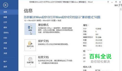 怎样解决Word2013打开文档显示“兼容模式”问题