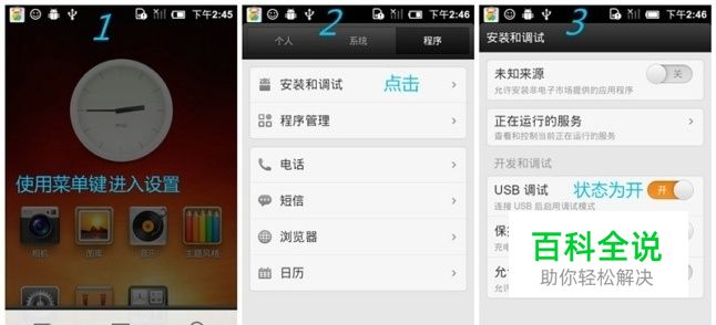 MIUI是小米发布的一款非常受安卓用户喜爱的一种安卓定制系统,系统以美观,简单实用等优点著称,但是很多用户在使用小米系统miui的时候会遇到各种各样的小问题,今天就要和大家说的一样是怎么设置usb调试模式,虽然是一个很小的问题,但是有一些小白还是不知道 这个根据目前发布的miui系统版本不同,设置的方法不同 如果你的miui系统是2.3: 请点击系统设置-安装和调试-usb调试,如下图所示 如果你的miui系统是4.0: 请点击设置-开发人员选项-usb调试,如下图所示