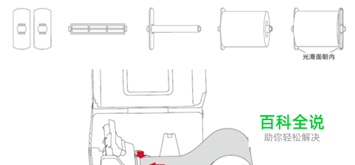 取出纸卷轴,将两个纸卷挡板从两边套入纸卷轴,光滑面朝向纸卷。 将纸卷轴连同纸卷一起放回纸卷仓,标签一次从标签导杆下方和打印头下方穿过;