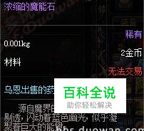 浓缩的魔能石玩家可以在安图恩副本中怪物掉落,它可以直接在npc乌恩处兑换药剂和其他物品,
