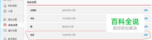 进入消息设置,点击私信的编辑,如图红线部分