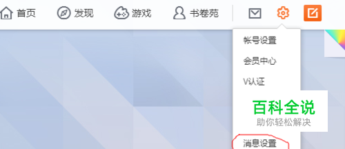 点击右上角设置,弹出下拉菜单栏,点击消息设置,如图红线部分