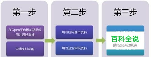1.1 申请流程图 1.2 申请接入步骤详细说明 1.2.1 到微信开放平台添加移动应用 目前仅对通过微信开放平台移动应用审核的APP开放微信支付申请入口,请登录微信开放平台,添加移动应用,等待审核。 1.2.2 申请支付功能,提交相关资料 在微信开放平台-管理中心,为通过审核的移动应用申请支付功能; 提交相关的资料,并等待微信支付审核,微信团队会在7个工作日给出审核结果,结果会发送到开放平台通知中心和邮箱中; 通知中心: 邮箱:商户在填写“业务审核资料”时设置的。 通过审核后,商户将收到邮件通知,邮件中包含重要开发参数,请牢记申请时填写的邮箱地址(如上图示)。 1.2.3 进入开发阶段,签订合作协议 通过微信支付审核后,系统会自动为商户生成《微信支付协议》,协议中各项关键信息已经自动生成,下载、盖章后,按照要求的地址寄回即可。待微信审核协议无误后,加盖我司公章后,尽快寄回给商户。 注意:请在协议上加盖骑缝章。