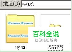 如下图,假如,D盘下面,有两个文件夹,分别为:MyPcs和GoodPC;