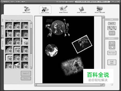 进入“Text”标签,为拼贴画添加文字。在这里还能对文字的字体、大小、颜色以及阴影进行设定。在拼贴画中可以随意拖动文字到指定的位置,使之与图片搭配得更加和谐。 在“Clip Art”标签下软件为我们准备了七大类丰富多彩的剪贴画,合理地使用它们可以给我们的拼贴画锦上添花。 编辑图片 按下工具栏中的“Edit Pieces”按钮,切换到图片编辑界面(如图2)。 图2 丰富海报内容