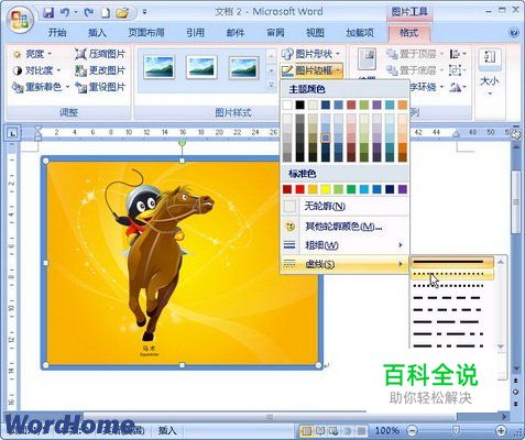 在Word2007文档中,用户可以为选中的图片设置多种颜色、多种粗细尺寸的实线边框或虚线边框。实际上,当用户使用Word2007预设的图片样式时,某些样式已经应用了图片边框。当然,用户也可以根据实际需要自定义图片边框,操作步骤如下所述: