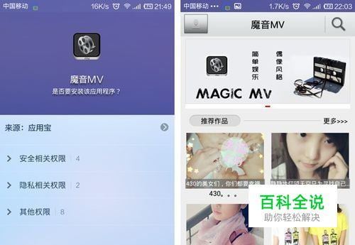 温暖提示,为了避免使用流量下载造成大量流量消耗,所以请大家下载程序前确认手机已经连接WIFI网络,当然如果你的流量太土豪请随意。进入应用汇、机锋市场、安卓市场等软件下载“魔音MV”APP。