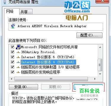 左击Internet协议版本4,点击属性。