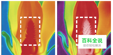问题三:热像仪能看得多清晰? 因素一:热灵敏度决定热像仪区分细微温差的能力。同样状况下,右图所用热像仪的热灵敏度更低,画面清晰显示花蕊细节的温度分布,而左图同区域只能看到一片红色。 因素二:最小检测尺寸决定了热像仪捕捉细小尺寸的能力。尺寸越小,相同面积的检测目标画面由更多像素组成,画面更清晰。 由右图可见,像素(马赛克)越小越清晰