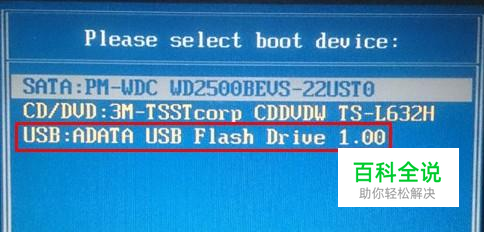 进入快捷启动项的选择界面后,我们选择u盘启动项所在的位置,按回车键进入,如下图所示: