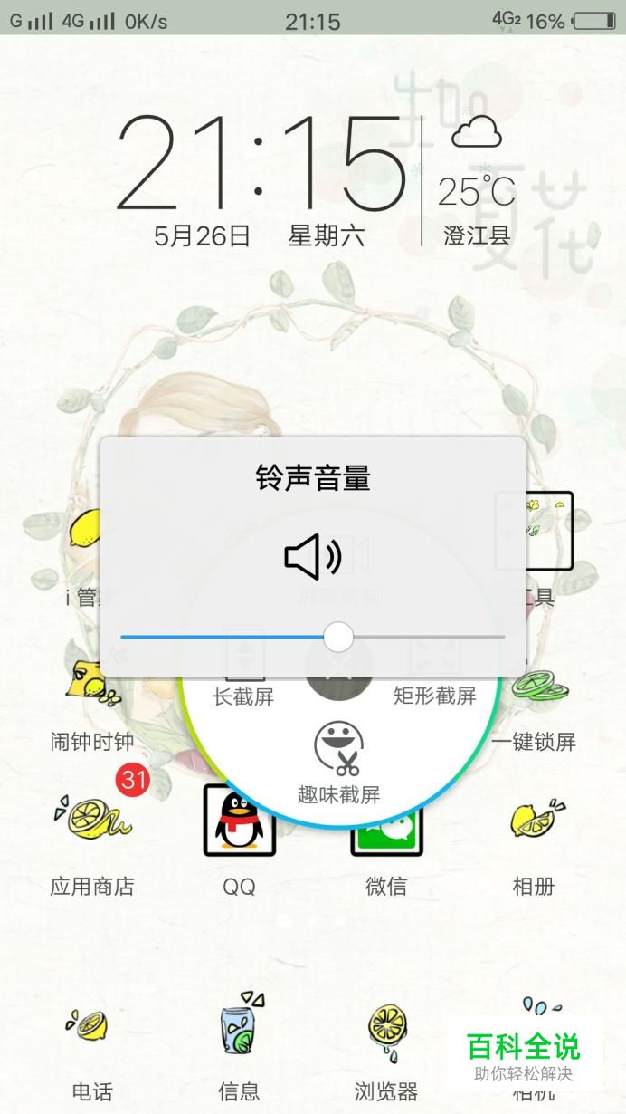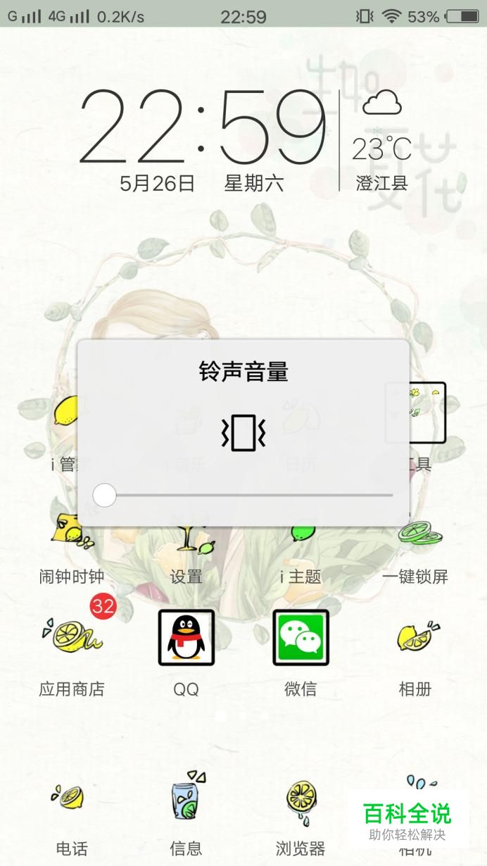 然后得保证手机屏幕是亮着,按音量键的上键,屏幕上就会出现铃声音量的图标,铃声音量就会随着按上键而增强
