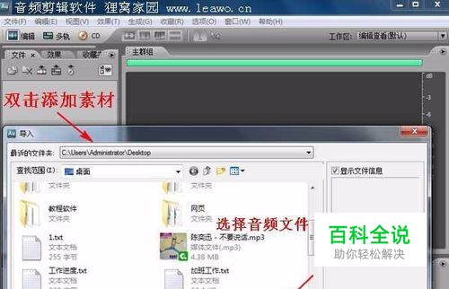 选择“文件”选项卡,在空白处双击,接着在弹出的对话框中选择事先准备好的音频文件,然后点击“打开”按钮。这里添加的音频文件就随自己喜欢,想添加谁的歌曲就添加谁的!