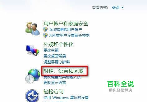 首先点击进入“控制面板”并点击“时钟、语言和区域”。