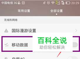 5、第三个就是我目前没有办理的4G选项栏,这个我也打不开不能演示了。只有办理这个的才可以设置哦。(开通4G的情况下图标是可以滑动的,同上面的“移动数据”图标一样)