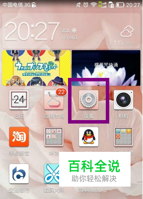 1、先回到主页面,看看里面的“设置”一栏,这里我就不在下图标注了,因为图里设置是个很明显的图标是个齿轮形状的,下面还有文字,设置两个字非常的清晰。(部分主题需要按菜单键,一般为手机三个按键中最左边的按键,轻按后菜单里会出现“设置”)