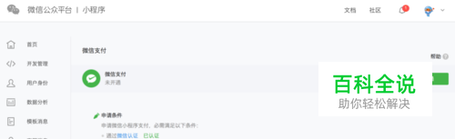 开通微信支付。微信小程序当前仅支持微信自有支付的商家进行使用。已有微信支付商户号的客户可以直接绑定原有商户号。