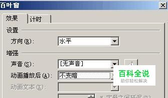 如上图一样,将其修改为“播放后动画隐藏”,最后点击“确定”退出即可。这样,就完成了让幻灯片中的动画播放后隐藏的目的。