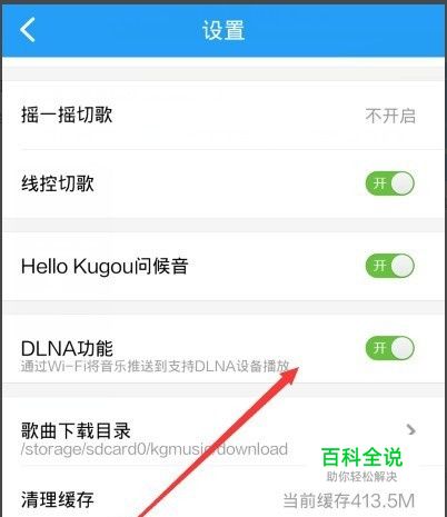 我们打开手机酷狗音乐,点击进入设置页面,然后将设置页面的如图所示的DLNA功能,我们将其打开