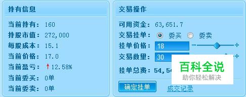 玩家在进行股票委买操作的时候往往很难顺利在短时间内买到自己想要的股票,这中间有很多小诀窍,掌握之后就会明白操控股票的一些基本方法了。例如图1中所显示的这份股票的成交价为17,发布的委卖最低价格为17,委买最高价格为13.1。当某位玩家发布的委买价格高于最低委卖价格的时候,成交的可能性就最大。 例如图2所示,发布了一份30单的委买信息,每手的的价格为18,这要高出最低委卖17的价格,这样成交的可能性就非常大,例如图3成交后的显示,实际的成交价格为委卖信息中最低的价格与你所发布的委买价格的平均值,17,18的平均值为17.5,例如图3中12点成交的30手股票所示。而这样一个成交价格在成交记录里显示也是从前一次的16.5增长到17,就带来整个股票的涨幅,从开始的17涨为17.3,涨幅从开始的3.03%增长到4.55%