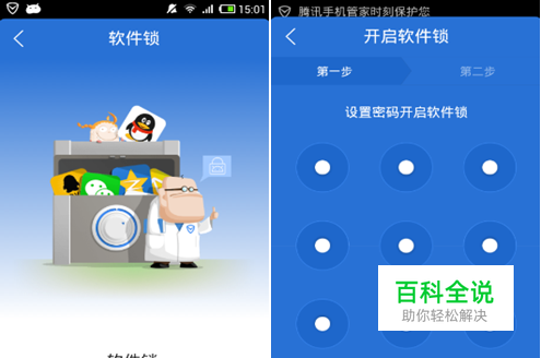 今天小编就主要介绍下新版腾讯手机管家的软件锁功能。手机包含了用户很多的个人信息,尤其是通讯类软件,如果帐号被盗用,可能会出现非常严重的后果。因此腾讯手机管家为了尽量保护用户信息安全在实用工具中推出了“软件锁”功能。我们可以给某些软件上锁详细操作如下。 1.安装腾讯手机管家并进入界面,在高级工具中找到软件锁一栏: 2.按照提示操作,选择立即开启一打开,安装之后按照提示进行操作,设置开启软件锁的图案密码,如图: 3、进入软件锁功能页面之后,就可以按照功能锁和普通软件锁来进行设置了,普通软件锁直接点击添加,然后选择具体要添加锁的软件即可,这样在手机主界面上点击应用的时候,就需要输入正确的图案密码之后,才能正常使用: 4、点击软件锁界面右上角的齿轮状按钮,就能对软件锁进行相关设置了,例如:软件锁功能的开关、密码设置中的修改图案密码,设定关联QQ(以免忘记图案密码之后没办法正常使用软件),加锁时机设定以及当前软件锁版本的信息: