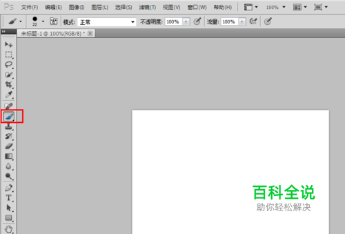 需要先创建一个背景,或者打开一幅图也可以 这里演示用的,所以用白色背景图 点击“画笔工具”
