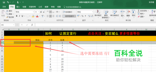 如何在滚动页面的情况下,保持行不动 。 选中序号下面的一行 选中需要固定行的下一行;