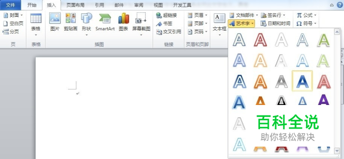 1、在“插入”选项卡下单击“艺术字”按钮,选择要应用的艺术字效果。