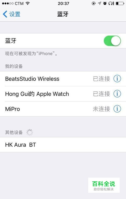 打开iPhone 设置,打开蓝牙, 自动搜索可以配对的设备。这时要等搜索到的蓝牙设备,BEATS 耳机 ,是要连接BeatsStudio Wireless的.