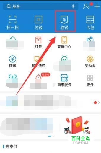 进入软件,在界面最上方有4个按钮,这里点击中间偏右侧收钱选项,进入个人收钱界面,会展示个人收钱码等收款方式。