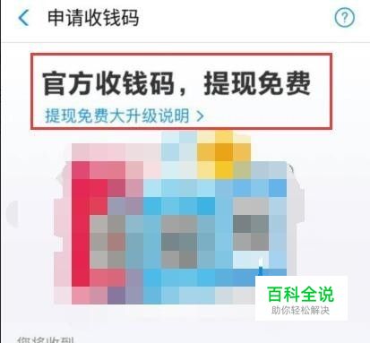 这里第一次进入此界面,并没有申请官方制作的卡片,虽然此界面有一个收钱码,但是通过他人扫描后转账获得的余额,提现并不能免费,这里需要申请此卡,点击箭头指的按钮。