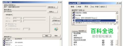 第3步:在图4-60中,选择“Network”类用户,然后单击【确定】按钮。返回【Inetpub属性】对话框(图4-52),可以按照前面讲述的内容为“Network”类用户指派对于Inetpub文件夹的NTFS权限或者共享权限。 图4-60中主要的安全主体的作用说明见表4-9