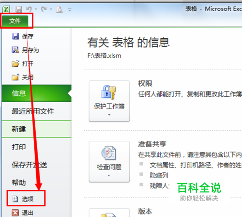 打开excel2012,点击左边的开始——选项