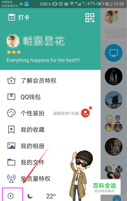 首先打开手机QQ侧边栏