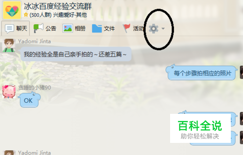 点击打开要查看的qq群名称以后进入到qq群聊天窗口,在qq群聊天窗口上面点击设置按钮,如图所示: