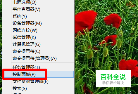 打开“控制面板”:右击桌面左下角“Windows图标”,从弹出的右键菜单中选择“控制面板”项。
