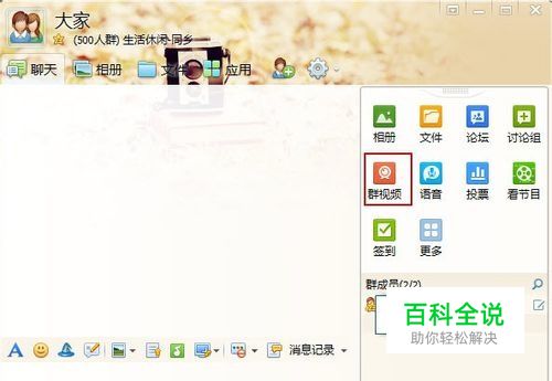 打开你自己的QQ,然后打开一QQ群,单击“群视频”。