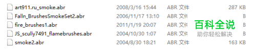 下载好“烟雾烟效”笔刷,这样的笔刷一般是以RAR格式下载下来的。解压打开以后,我们就能看到笔刷文件了,格式为.abr