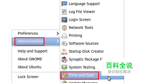 在系统菜单栏中,依次点击并打开“系统”-----“系统管理”-----“时间和日期”