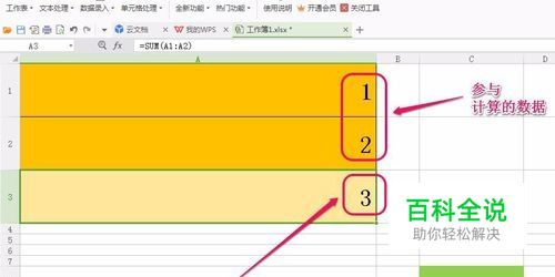 打开“wps表格”软件,如图,表格中已经有了一些数据。 A1和A2单元格内的数据时参与计算的数字,A3单元格捏的数据时计算结果。我们需要把A3单元格内的结果提取出来。