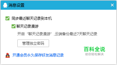 在弹出的“消息设置”窗口中,勾选“同步最近聊天记录到本机”项,点击“聊天记录漫游”项。