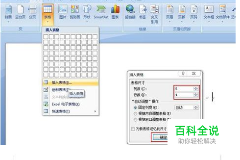 也可以通过设置窗口来实现表格的插入。具体方法:点击“插入”选项卡中的“表格”,从其下位列表中选择“插入表格”,在弹出的对话框中输入“列数:5,行数:3”,也可实现同样的插入表格操作。