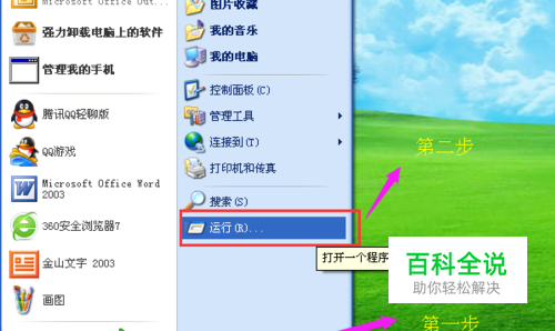 点击屏幕左下方的“开始”按钮,在弹出的菜单中选择“运行”选项。