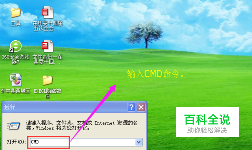 在弹出的“运行”命令输入窗口中,在“打开”框中输入“CMD”命令。
