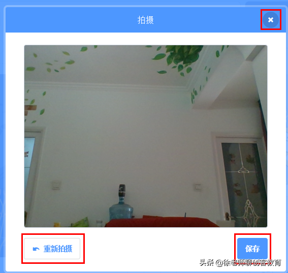 11、拍完后如果效果不好,可以点击"重新拍摄",没有问题就单击"保存"按钮,也可以单击关闭按钮,关闭拍摄窗口,如下图所示。