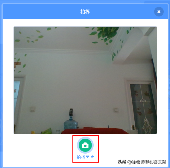10、弹出"拍摄"窗口,打开电脑的"摄像头",点击"拍摄照片"按钮,拍摄自己的头像,如下图所示