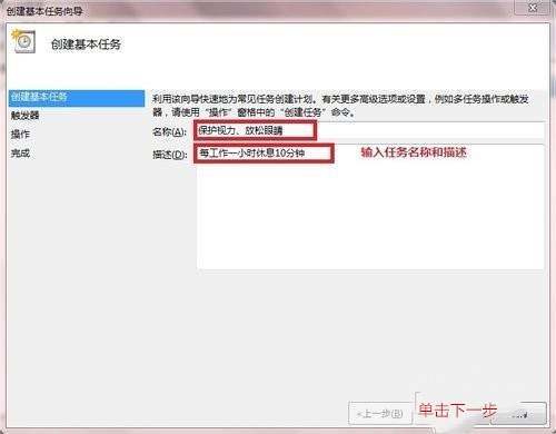 输入任务的“名称”以及“描述”,单击“下一步”。