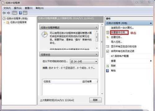 2在“任务计划程序”窗口单击“创建基本任务”,打开“创建基本任务向导”。